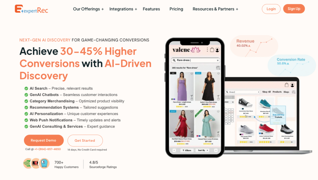 ExpertRec’s AI-powered site search transforms self-service into a growth engine—unifying content, providing reliable generative answers, delivering proactive recommendations, empowering agents, and offering actionable analytics. It’s the clearest example of AI for Customer Retention, helping brands keep customers engaged, loyal, and coming back.
