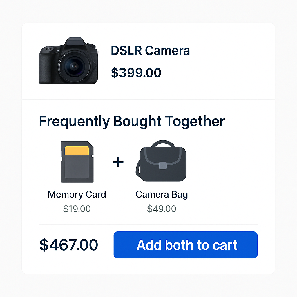 • Classic cross-sell logic that shows items commonly purchased with the current cart contents.